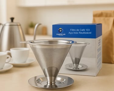Filtro De Café Reutilizável Em Aço Inox Modelo 103 Peneira. Sustentável Coar Café Tradicional Sem Papel Econômico